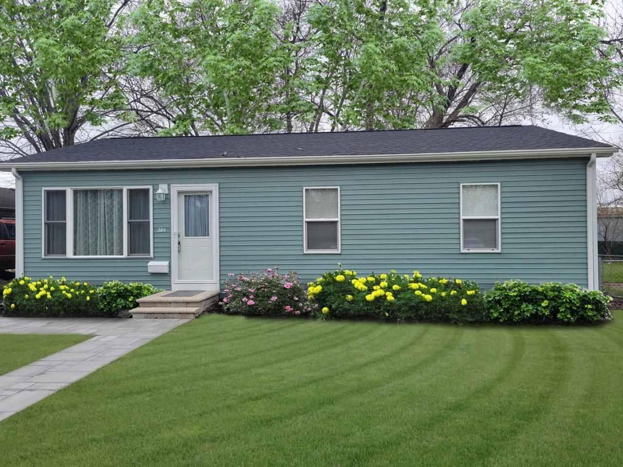 Looking for a completely updated home? This lovely ranch checks all the boxes! Relax or entertain in your open concept kitchen/living room. The kitchen features premium white shaker cabinetry, granite countertops, kitchen island with bar top perfect for your bar stools. Soft-close doors and drawers, can and task lighting, pantry closet with recessed shelf for a microwave. The main living space is floored with engineered hardwood flooring for easy care. The bathroom has been upgraded with modern tile, a deluxe sink vanity, water-saving toilet, tub/shower surround with new shower head and tile inlay and recessed cosmetic shelf. All bedrooms have a ceiling fan with light, new 6-panel doors and trim, lots of closet space, and neutral carpeting. The utility area of the basement has been enclosed and can lighting and durable epoxy flooring installed to make it easy to finish off for more living space. Exterior updates: roof, premium vinyl siding, gutters and downspouts, window wells, soffit wrap, energy efficient vinyl windows, paver stone sidewalk and stoop, exterior doors and storm doors. Furnace, central A/C, water heater kitchen appliances and extra attic insulation all done in 2024. Fully fenced backyard with mature trees and cement patio area for entertaining. Room for a 1 car garage, plans filed with the village if you wish to add one. Backyard shed for extra storage. This home will give you many years with minimal maintenance.